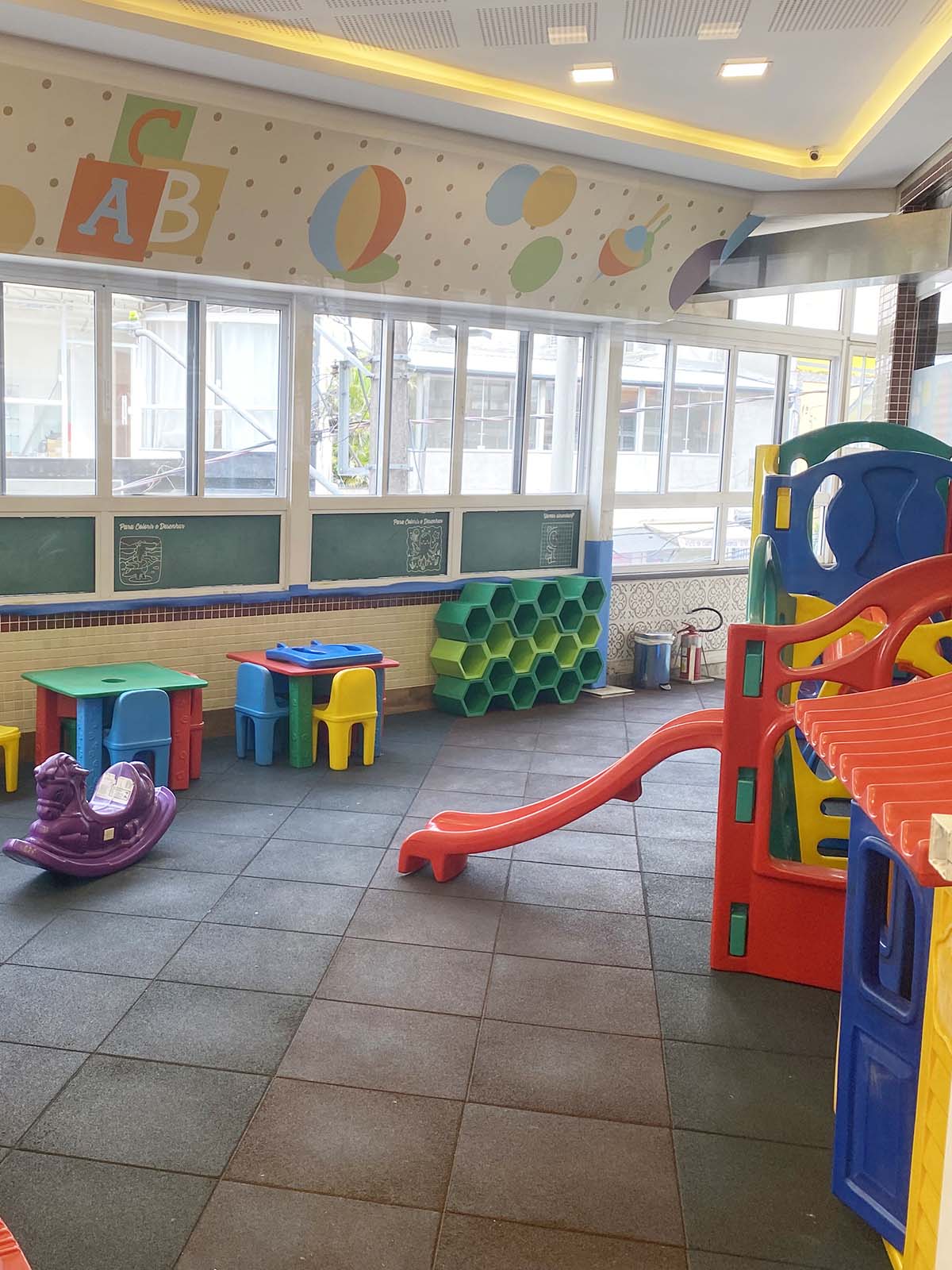Espaço exclusivo para as crianças aproveitarem. Fraldário unisex para papais e mamães cuidarem de seus bebês.